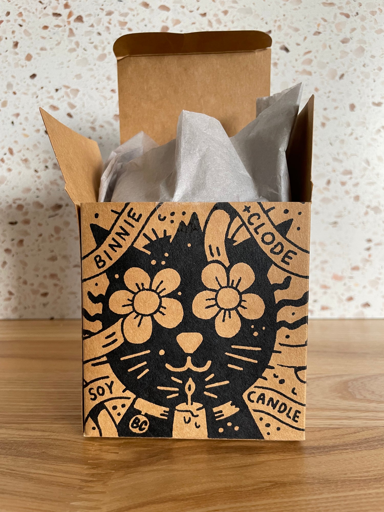 Once your candle is finished, plant your wildflower seeded paper in this container under soil. Water your seeds and place it somewhere sunny. Watch your wildflowers grow! Post a photo of your new bloom and tag us @binnieandclodeco. Please view the following page for more information on planting instructions.